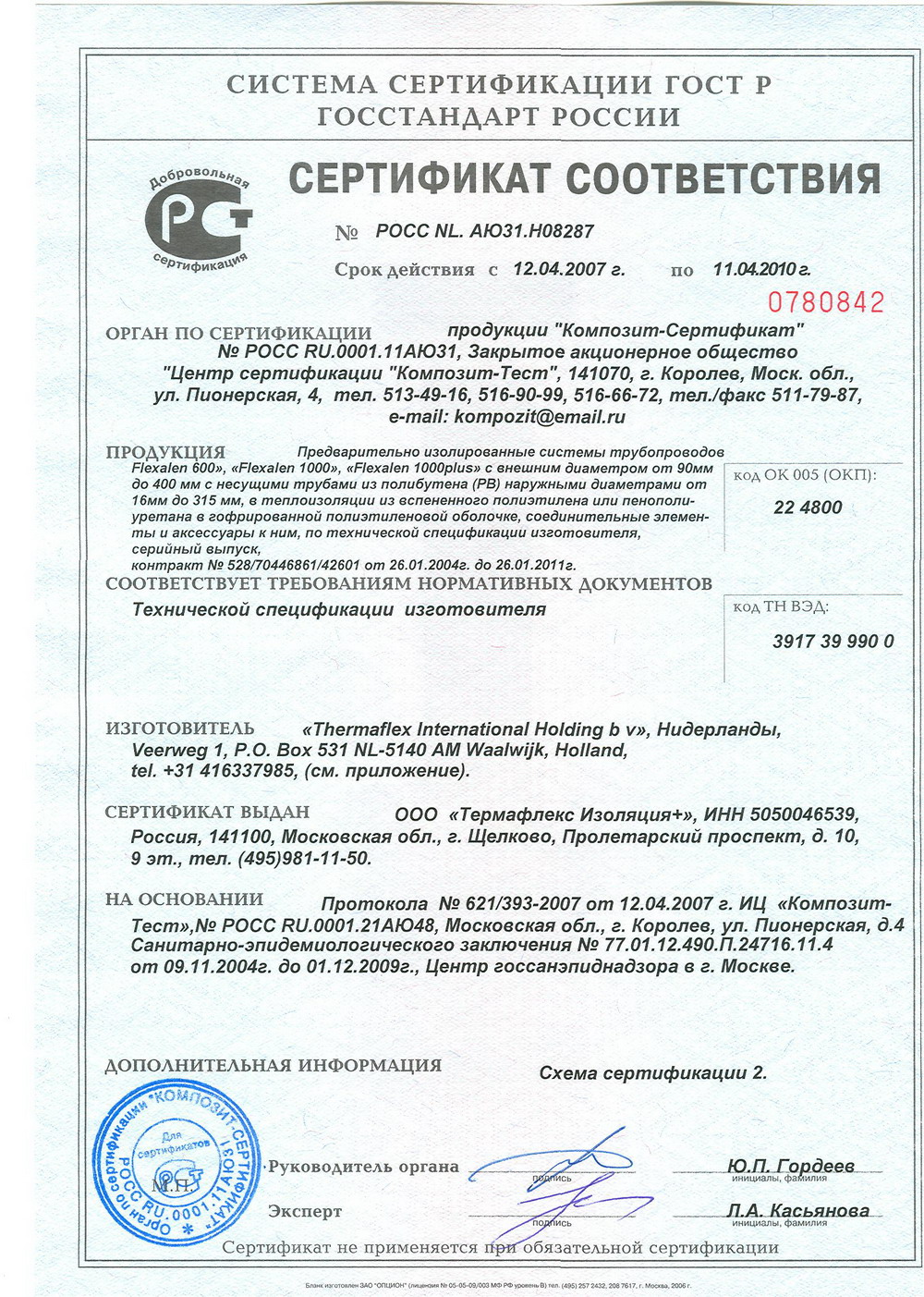 Сертификат соответствия: Флексален 600, Флексален 1000, Флексален 1000+.